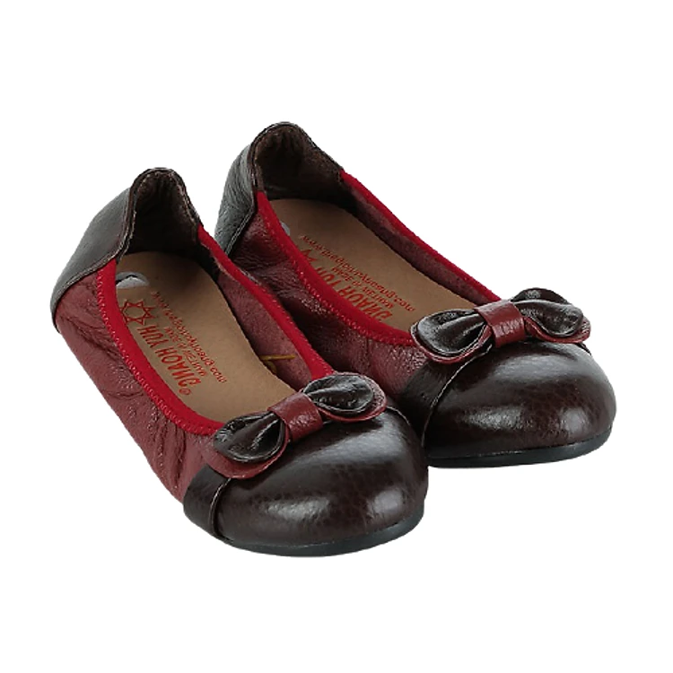 Giày trẻ em nữ Huy Hoàng da bò màu đỏ đô phối đen HC7863