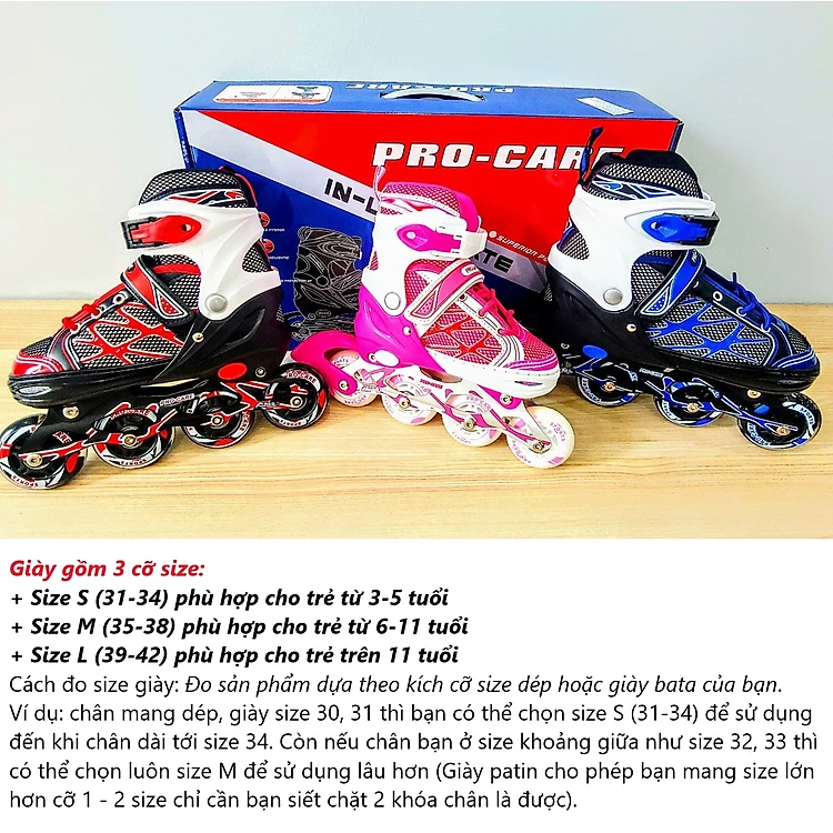 Giày Trượt Patin 1 Hàng Bánh 606 PRO-CARE (có thể điều chỉnh size)