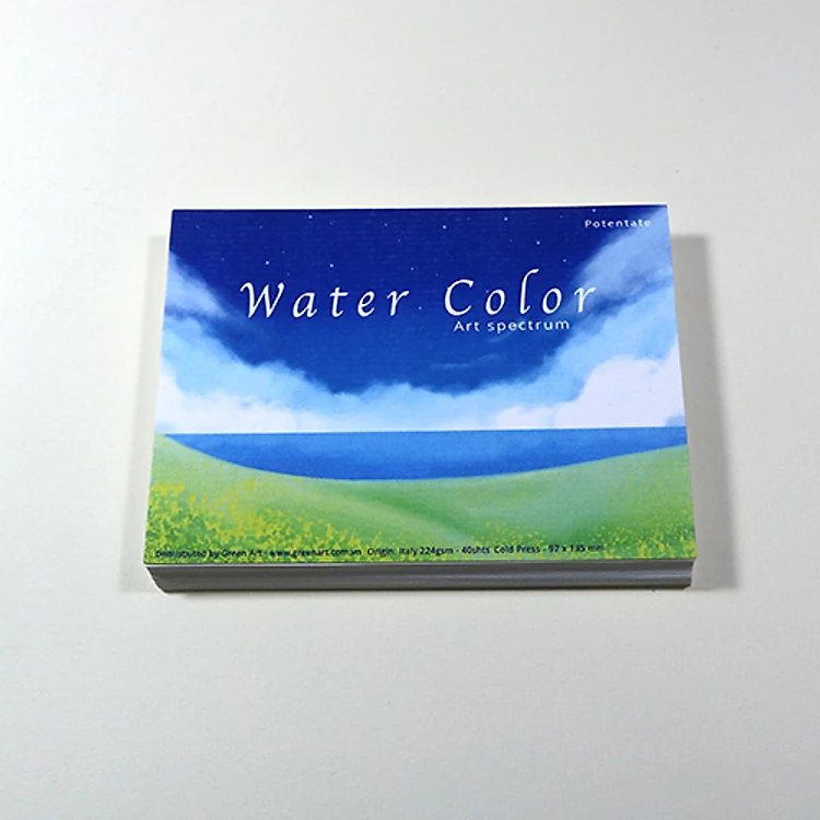 Giấy vẽ màu nước A6 lỡ vẽ các hình dễ thương, giấy vẽ chuyên dụng có vân nhập từ Ý, chất giấy 224gsm 40 tờ CTB784 Green Art - Hàng chính hãng