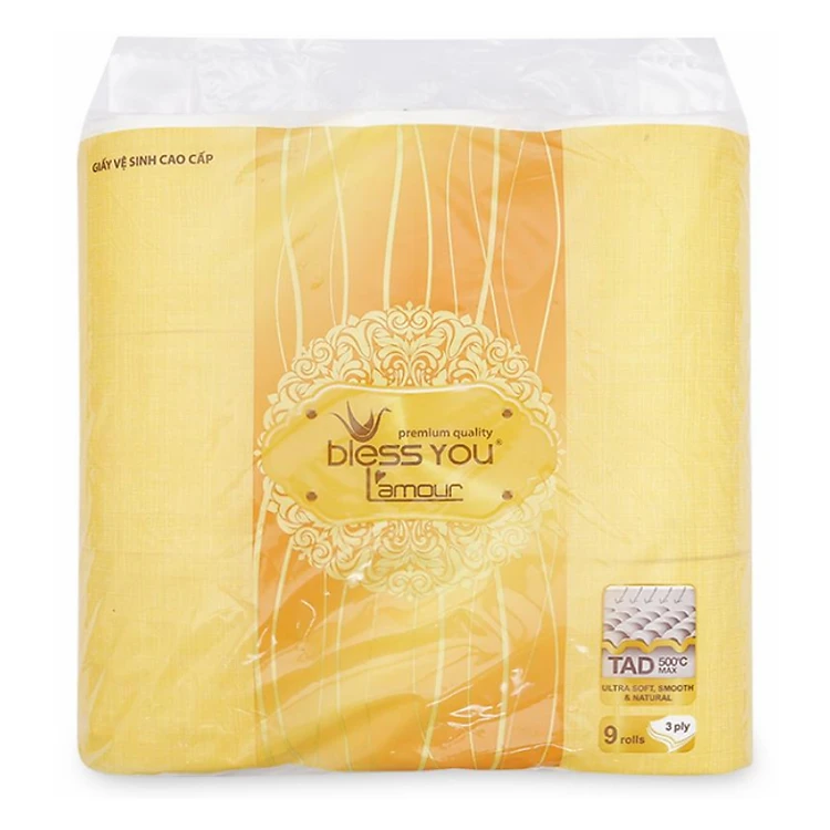 • Giấy Vệ Sinh Bless You L'Amour (9 Cuộn) là sản phẩm giấy vệ sinh chất lượng cao được sản xuất trên dây chuyền khép kín với công nghệ mới đảm bảo an toàn vệ sinh.