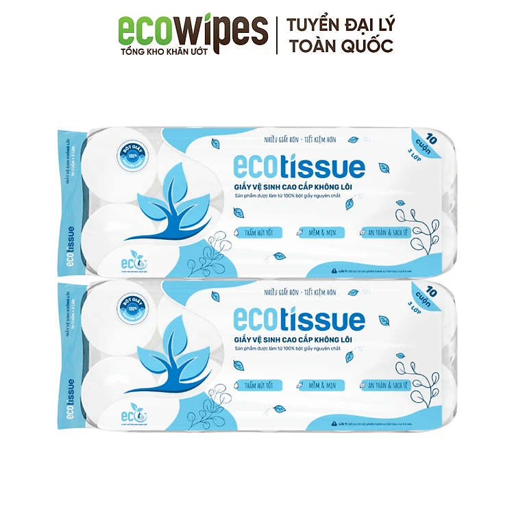 Giấy vệ sinh giấy cuộn cao cấp Ecotissue 3 lớp lốc 10 cuộn có lõi/không lõi cao cấp mềm dai tự nhiên