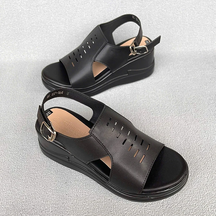 Giày Xăng đan nữ 7cm thời trang đế bằng pu siêu nhẹ màu đen Trường Hải XD145