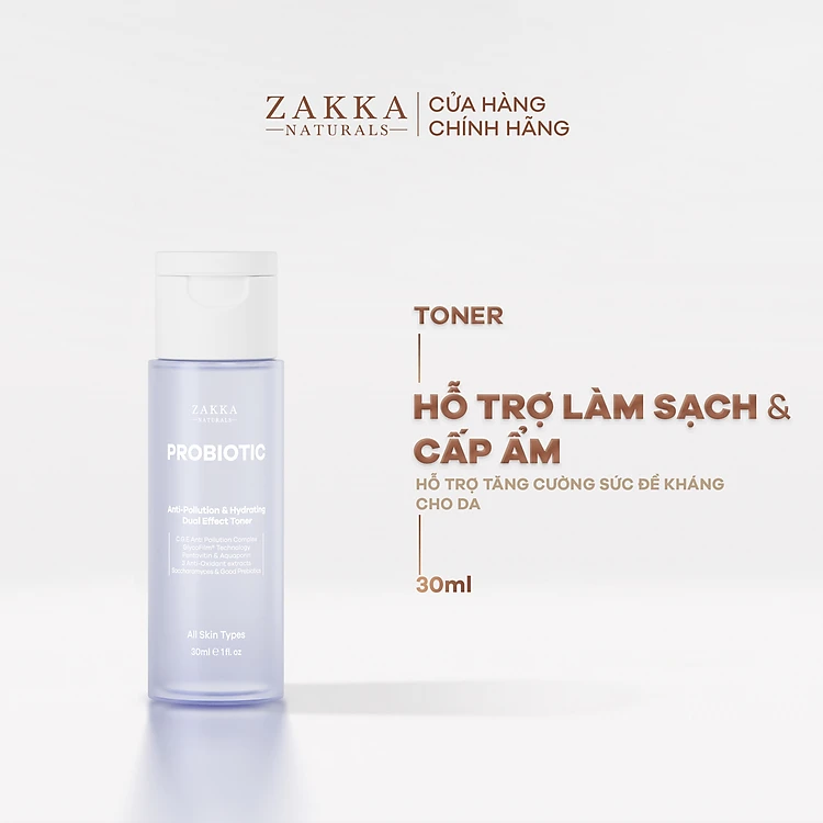 Toner 2 Trong 1 Hỗ Trợ Làm Sạch Và Cấp Ẩm Probiotic Anti-Pollution & Hydrating Dual Effect Zakka Naturals 30ml