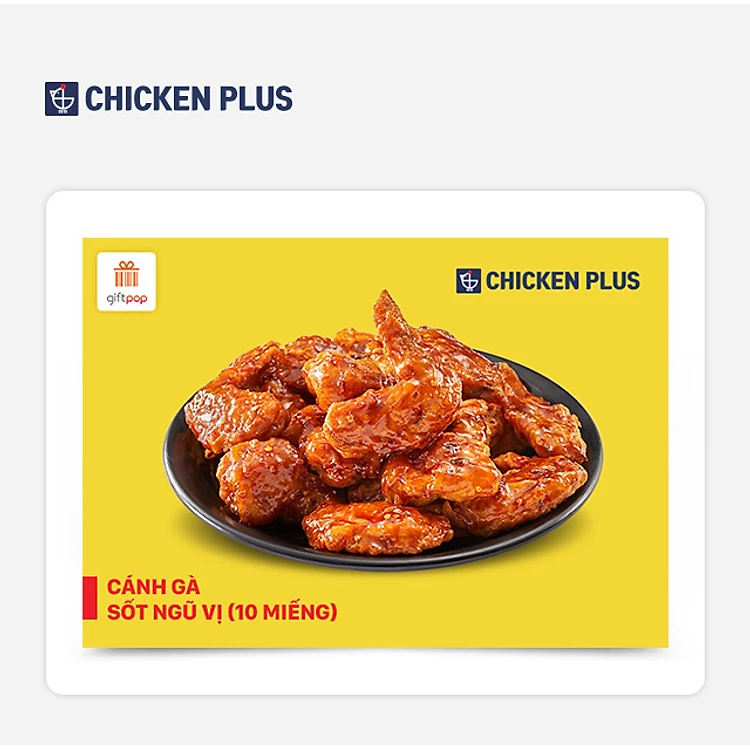 Giftpop - Chicken Plus Voucher Cánh Gà Sốt Ngũ Vị (10 miếng)
