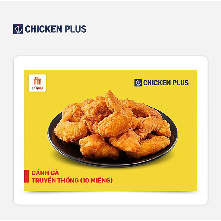 Giftpop - Chicken Plus Voucher Cánh Gà Truyền Thống (10 miếng)