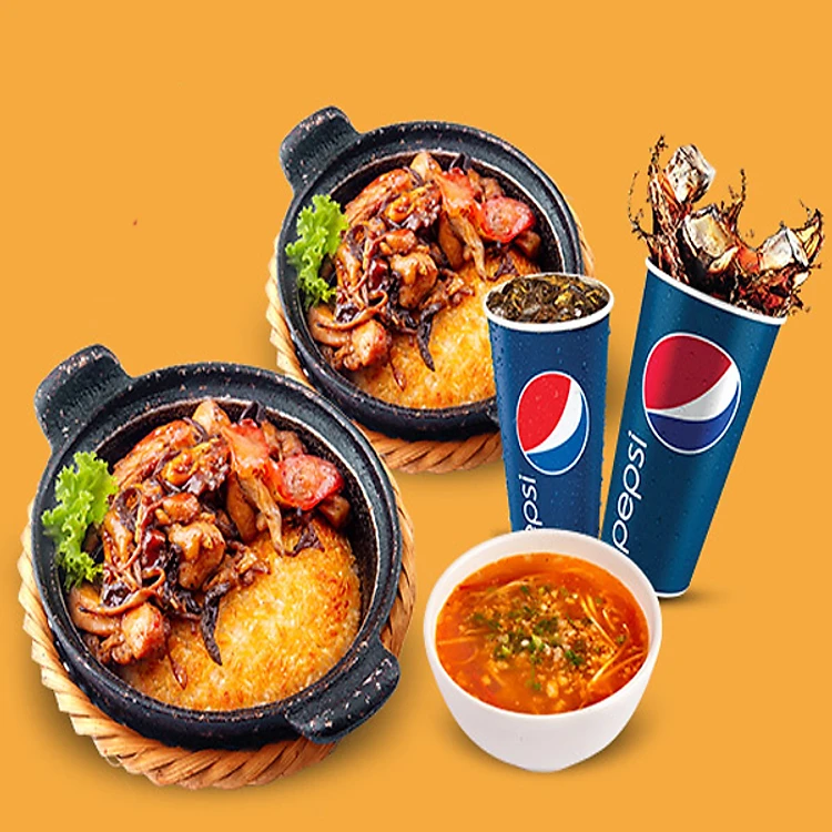 Giftpop-Kombo Cơm Niêu Singapore - Set Ăn 2 Cơm Niêu Gà Nấm 2 Mặt + 2 Pepsi + 1 Canh Chua Dành Cho 02 Người