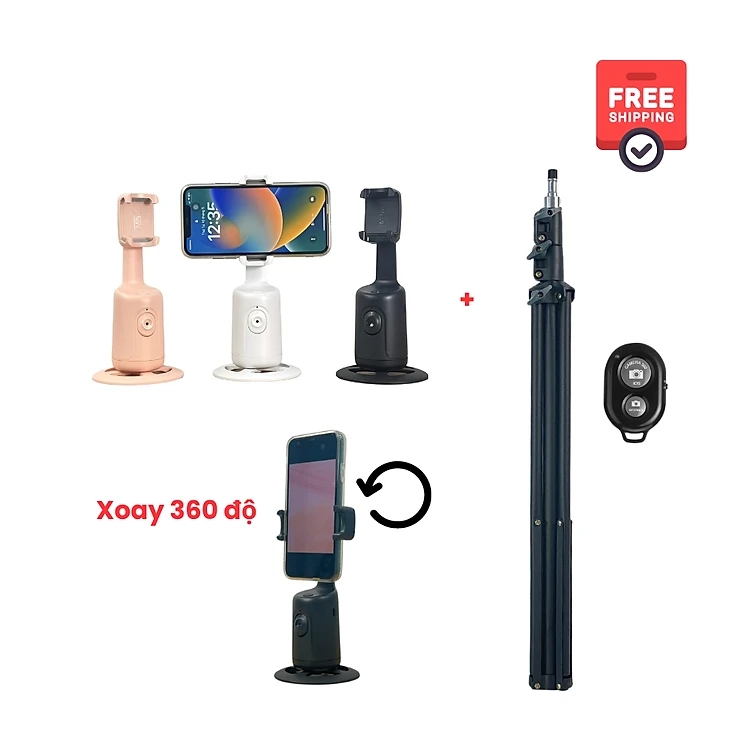 Gimbal xoay tự động P01 (Tặng Kèm Chân+Remote) - Phụ kiện hỗ trợ Selfie quay video 360 độ, chuyển động cảm biến và không dùng app - Hàng chính hãng