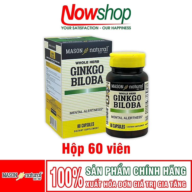 Ginkgo Biloba 125mg Mason Natural Hộp 60 viên giúp hoạt huyết dưỡng não giảm đau đầu chóng mặt