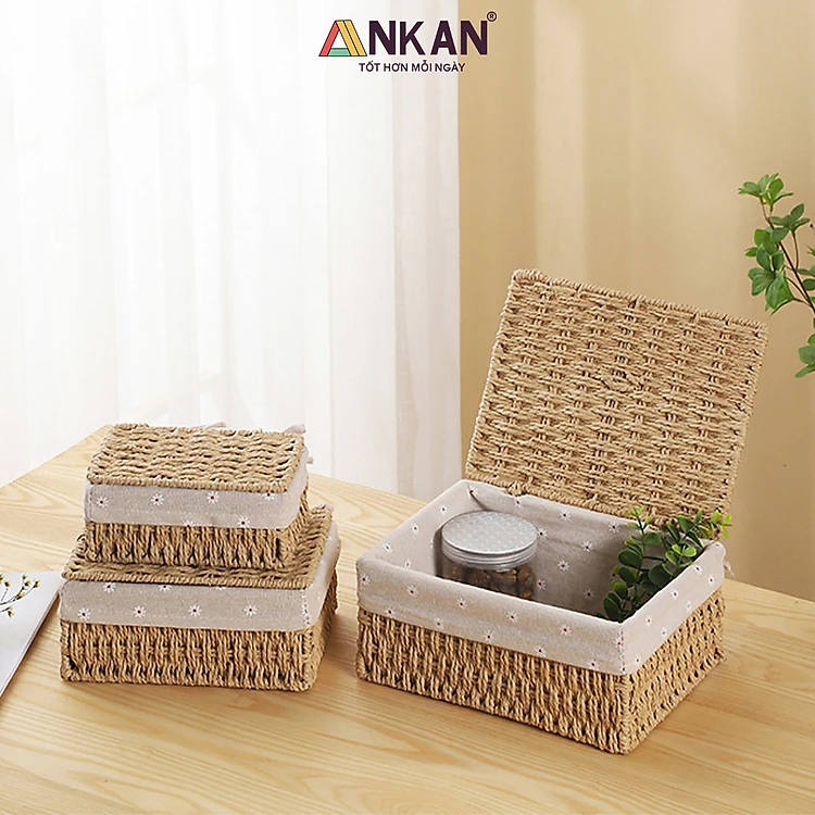 Giỏ Đựng Mỹ Phẩm Có Nắp ANKAN Dùng Để Bàn, Đựng Đồ Mini, Sắp Xếp Đồ Đạc Gọn Gàng, Ngăn Nắp