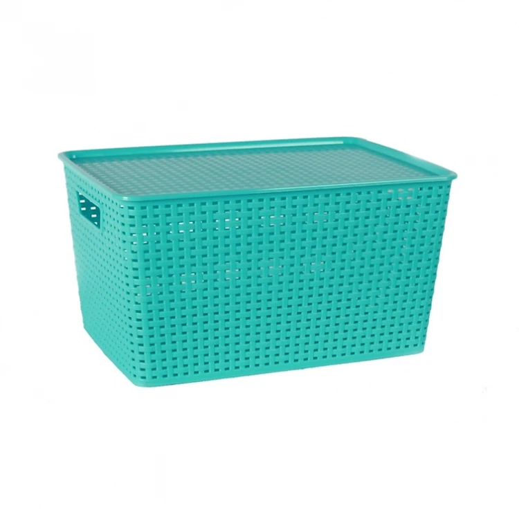 Giỏ nhựa mây tre đan đựng đồ có nắp đậy, giỏ đựng đồ đa năng, rổ nhựa hàn quốc. Phân phối bởi phương phương store Home.