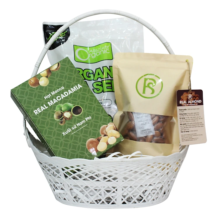 Giỏ Quà: Hạt Chia Organic Chia Seeds Úc Túi 1Kg + Hạt Dinh Dưỡng Cho Sức Khỏe Mắc Ca Hộp 400g + Hạt Dinh Dưỡng Cho Sức Khỏe Hạnh Nhân Real Almond Túi 200g sẽ là món quà ý nghĩa dành cho người phụ nữ thân yêu của bạn. Bộ sản phẩm sẽ mang đến rất nhiều lợi ích về sức khỏe cho người sử dụng.