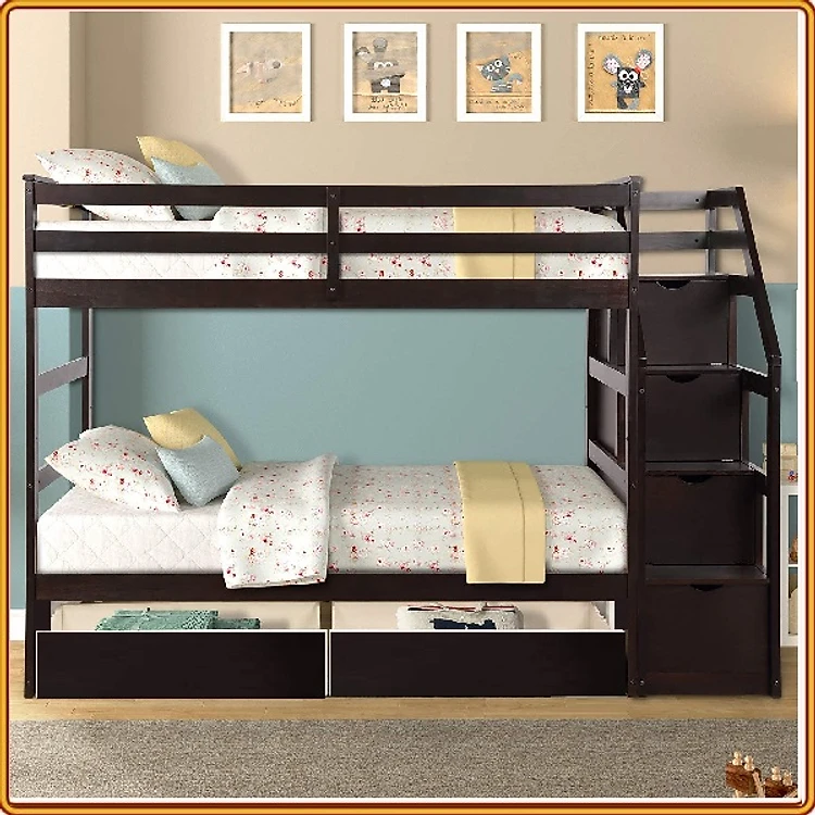 Giường 2 tầng Tundo màu nâu kèm 2 hộc kéo