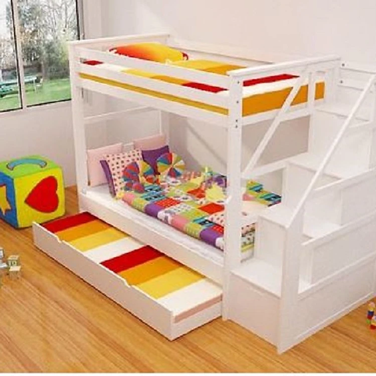 Số tầng: gồm 3 tầng giường và ngăn tủ cầu thang chứa đồ tiện lợi