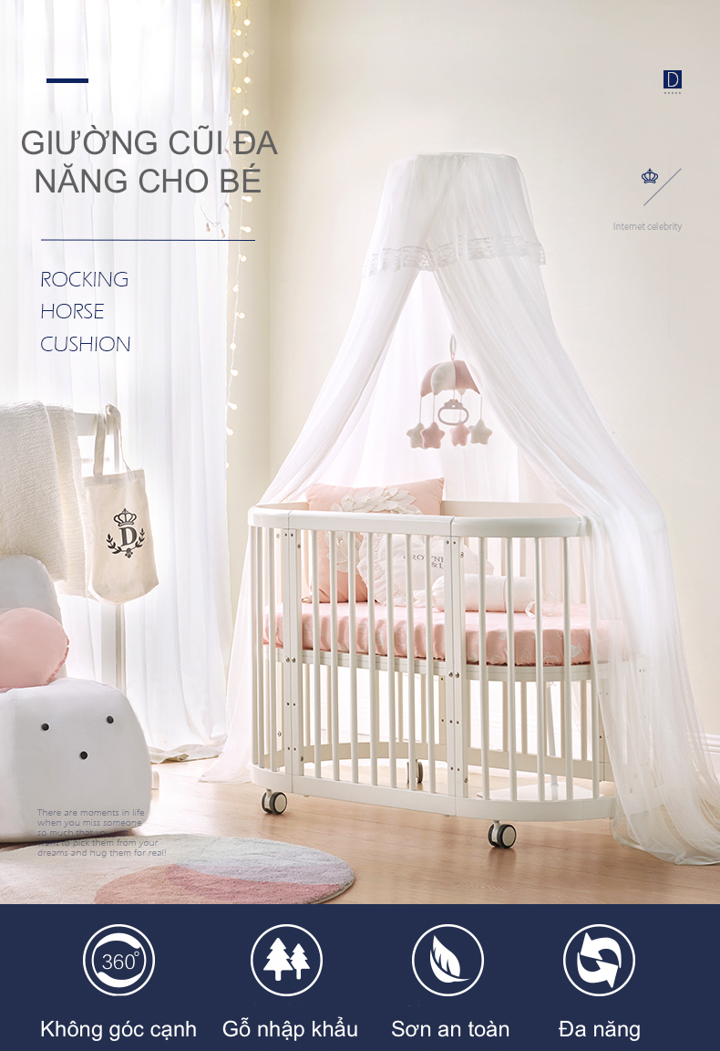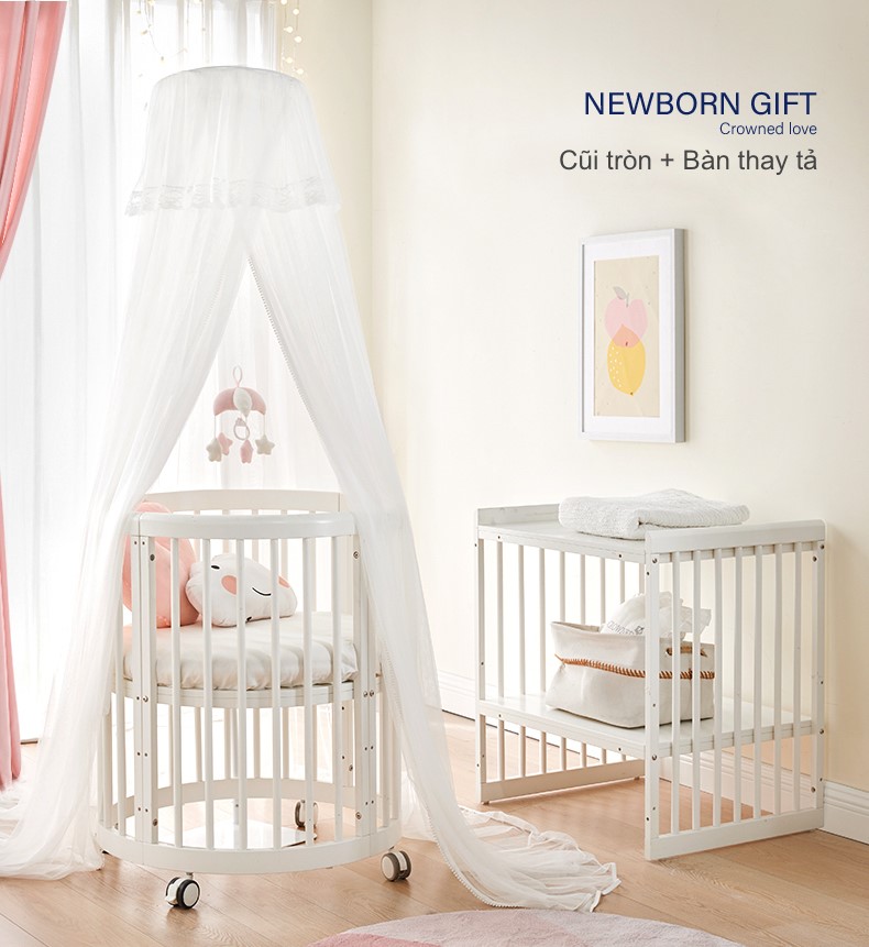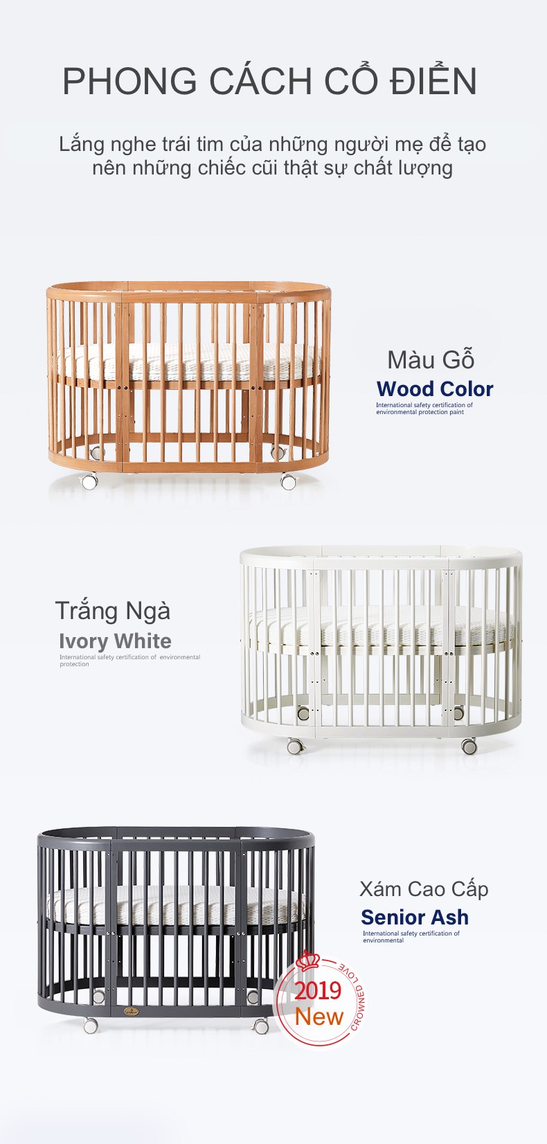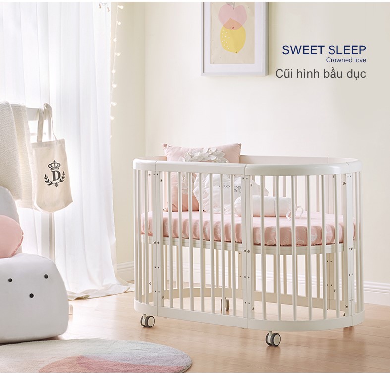 Giường Cũi Đa Năng Hình Oval Cho Bé Từ 0-5 Tuổi