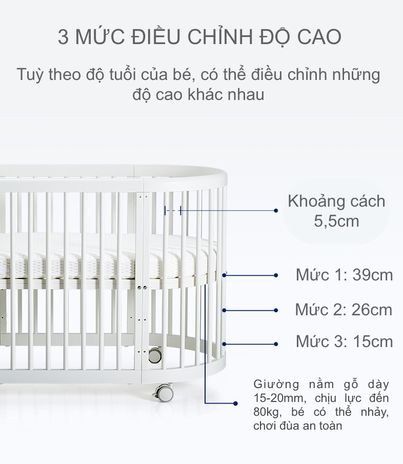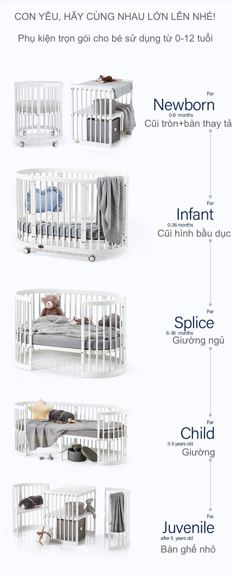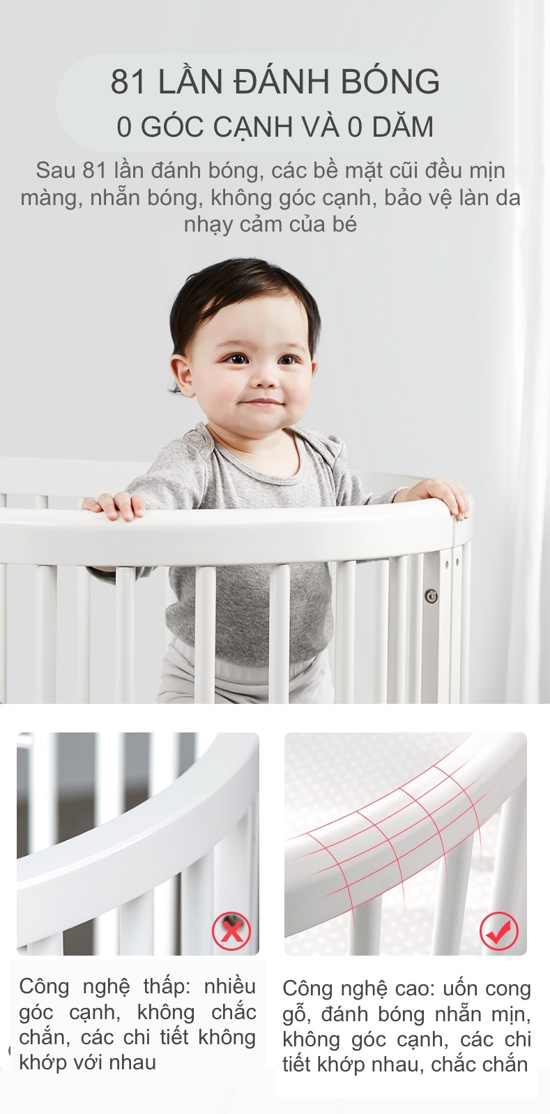 Giường Cũi Đa Năng Hình Oval Cho Bé Từ 0-5 Tuổi
