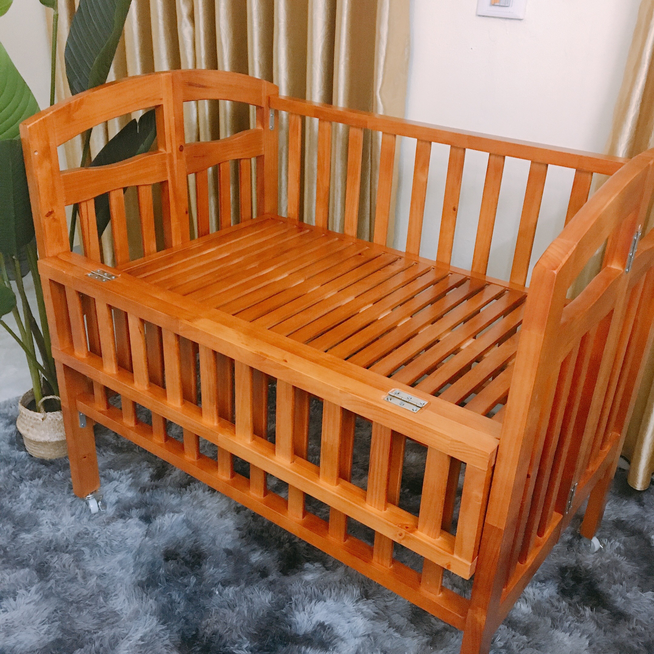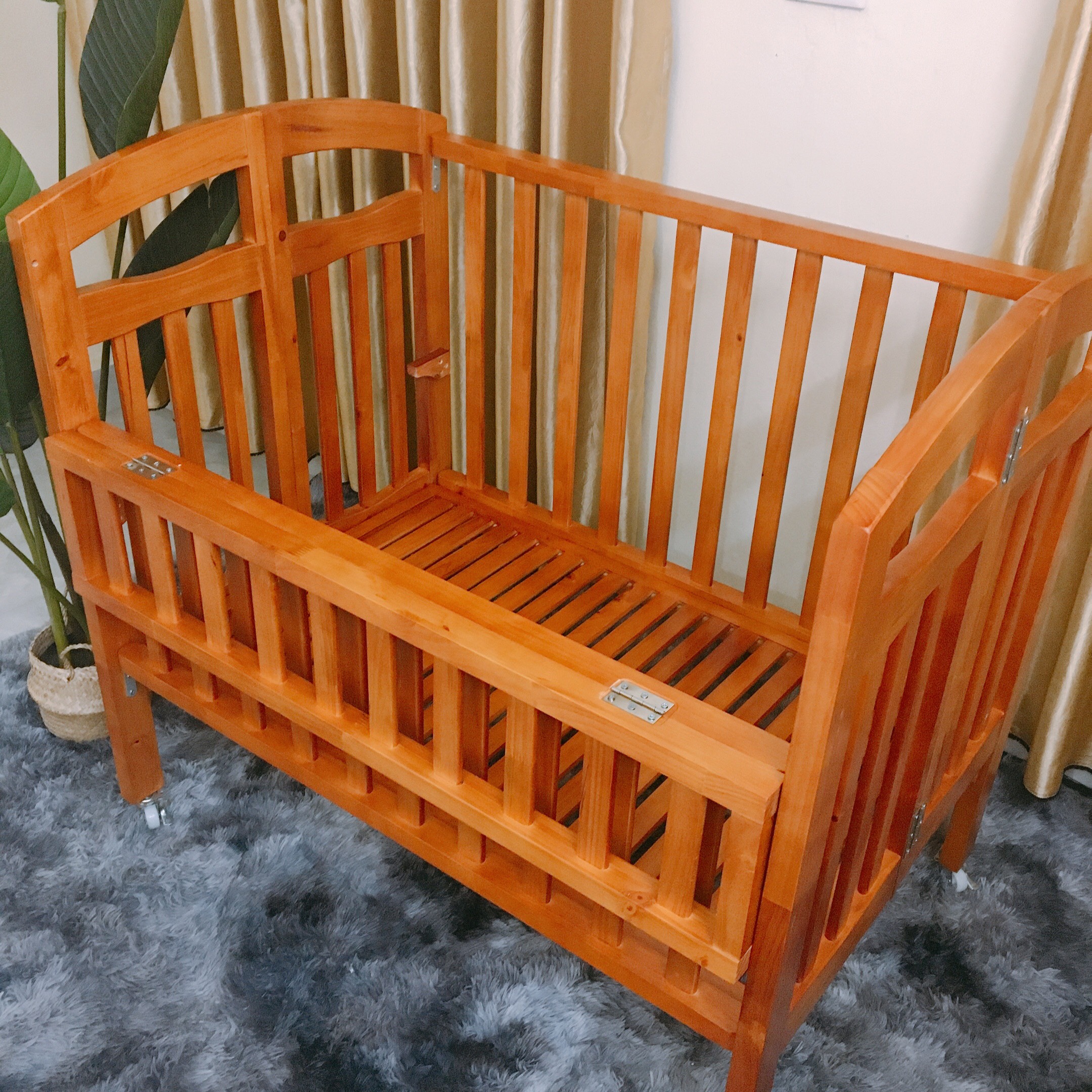 Giường Cũi Gỗ Thông Nhà Máy Màu Cánh Gián - Sang Trọng Hiện Đại - Tặng Kèm 4 Bánh Xe Có Khóa - Các Kích Thước