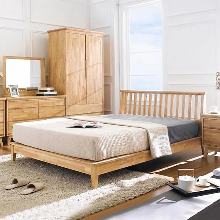 - Kết cấu khung giường chắc chắn và cân đối, kể cả thanh giường được làm hoàn toàn từ gỗ thịt, có thể chịu được trọng lượng lớn mà không bị nứt gãy theo thời gian.