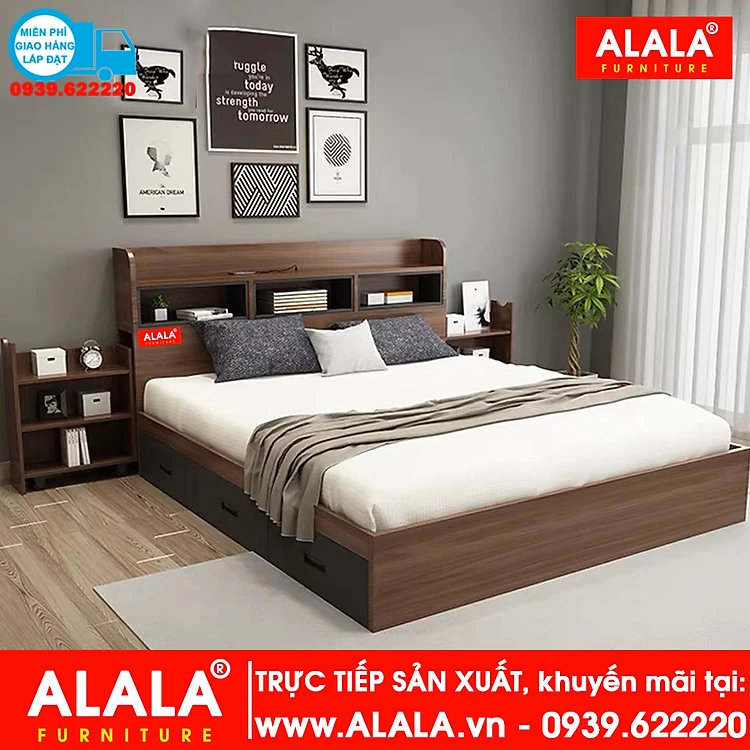 Giường ngủ ALALA81 gỗ HMR chống nước - www.ALALA.VN - 0939.622220