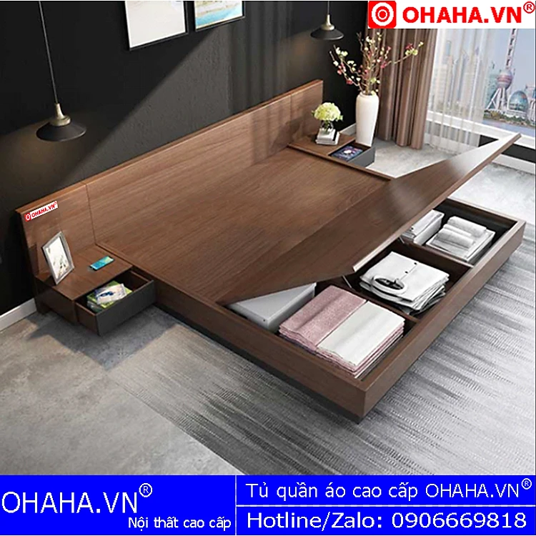 Giường ngủ gỗ cao cấp OHAHA kiểu Nhật (GN101)