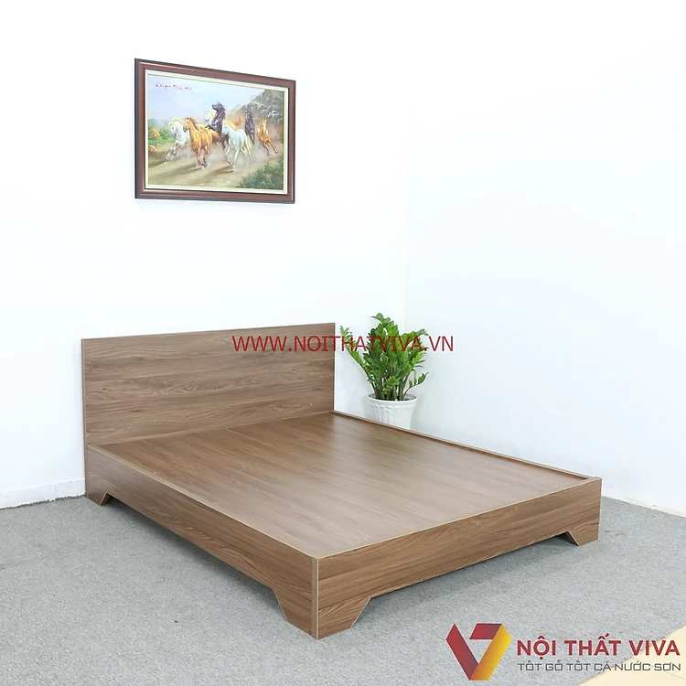 Giường Ngủ Gỗ MDF Chân Cao Phủ Melamine Màu Óc Chó