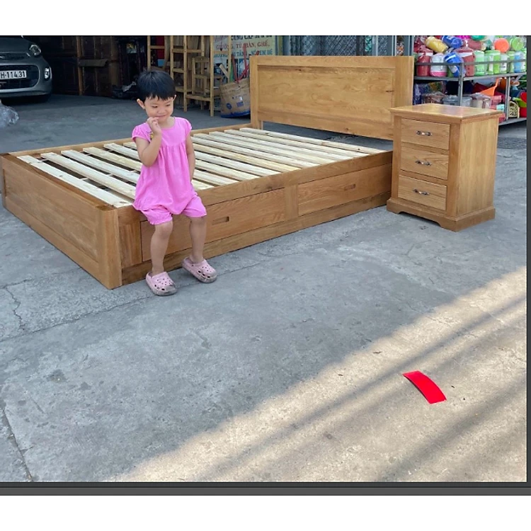 Giường ngủ gỗ sồi Tundo 1m8 + 2 hộc kéo hiện đại