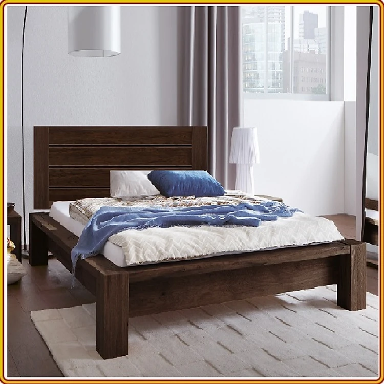 Giường ngủ Juno sofa gỗ sồi, mặt gỗ màu nâu óc chó