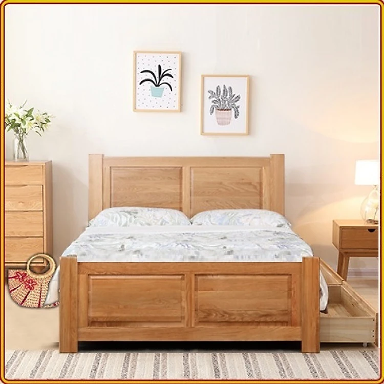 Giường ngủ Tundo gỗ sồi màu tự nhiên 1m8 - 2 Hộc