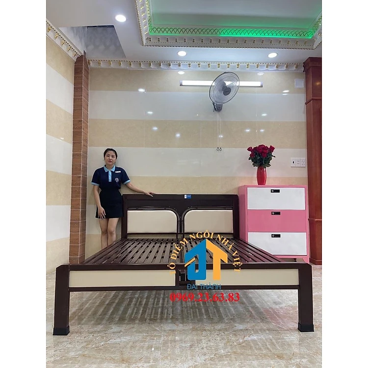 Giường ngủ sắt cao cấp kiểu gỗ ngang 1m8 dài 2m bảo hành 2 năm