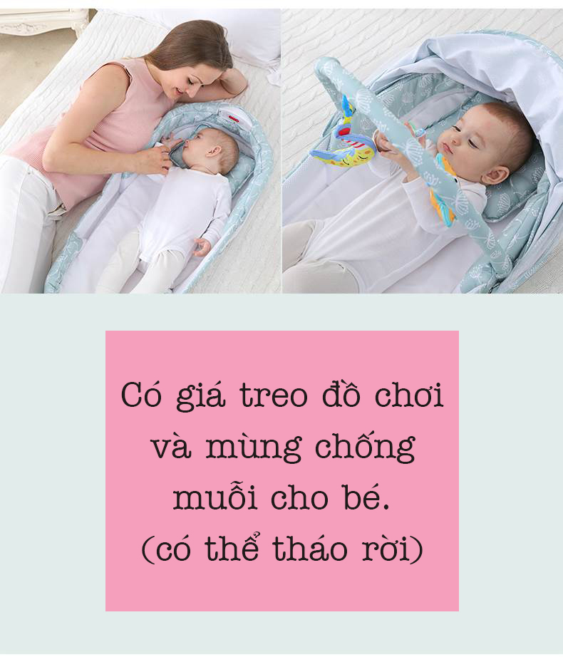 Giường Nôi Ngủ Chung Giường là sản phẩm an toàn để con được nằm ngủ cùng cha mẹ mà vẫn có một không gian riêng biệt. Cha mẹ cũng không còn nỗi lo ngủ đè, chèn vào con. Khe lưới dễ quan sát giúp cha mẹ xử lý kịp thời khi con thức giấc, đói bụng, nằm xô lệch…