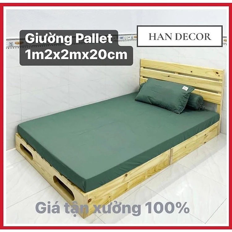 GIƯỜNG PALLET 1m2x2m CHÂN CAO 20cm CÓ ĐẦU GIƯỜNG FULL KÍN CHÂN