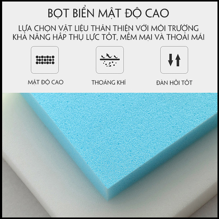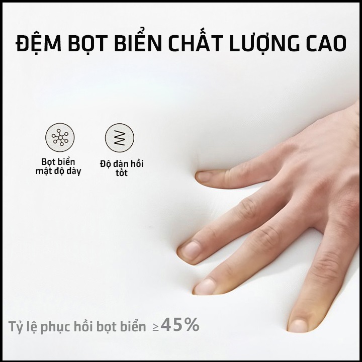 - Nệm bọt biển hạt PP nhiều lớp tiêu chuẩn mật độ cao, độ đàn hồi tốt. Mang lại cảm giác thư giãn, thoải mái.