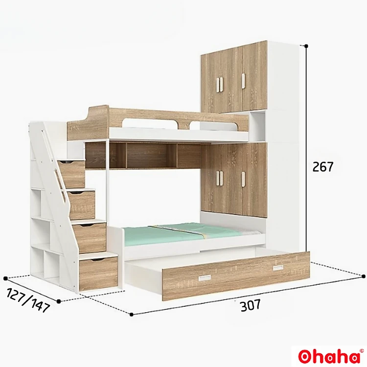 Giường tầng thông minh Ohaha kết hợp tủ áo và kệ sách - GTTM015