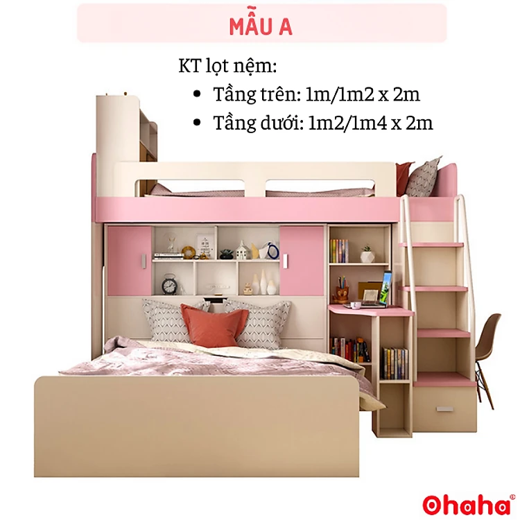 Giường tầng thông minh Ohaha kết hợp tủ và bàn học - GTTM003