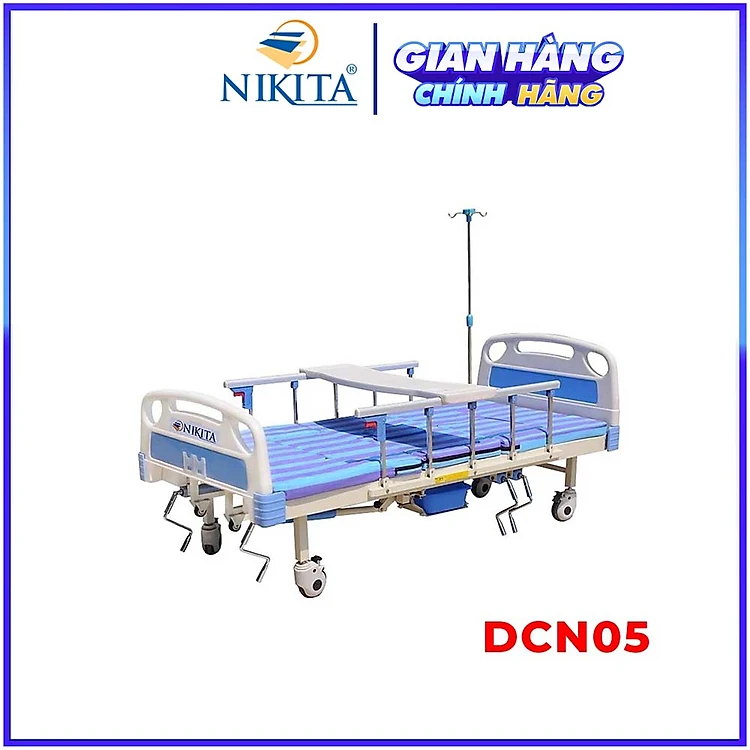Giường y tế - DCN05 - Nâng đầu, nâng hạ chân, nghiêng trái phải, có chổ để bô - Chính hãng NIKITA
