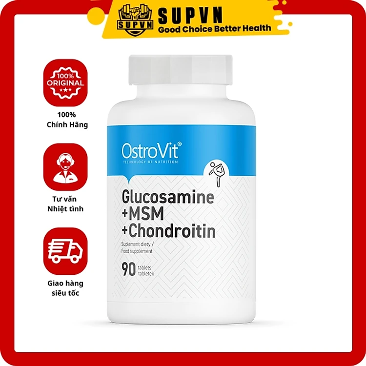 Glucosamine + MSM + Chondroitin Ostrovit (90viên) - Hỗ trợ tăng dịch nhầy cho xương khớp và tái tạo sụn