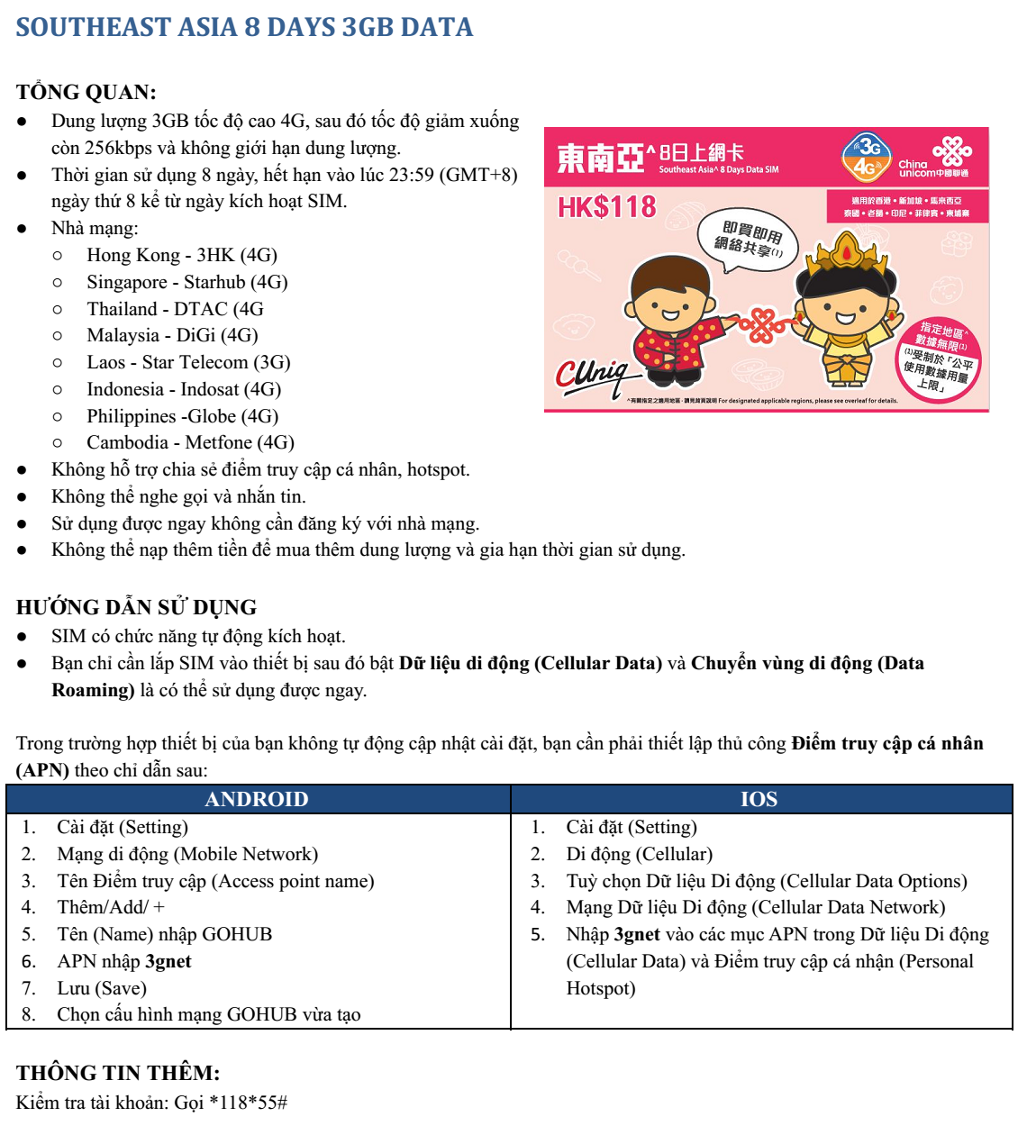 Gohub - Sim 4G Malaysia, Singapore, Thái Lan, Indonesia, Philippines, Lào, Campuchia, Hongkong (DATA)