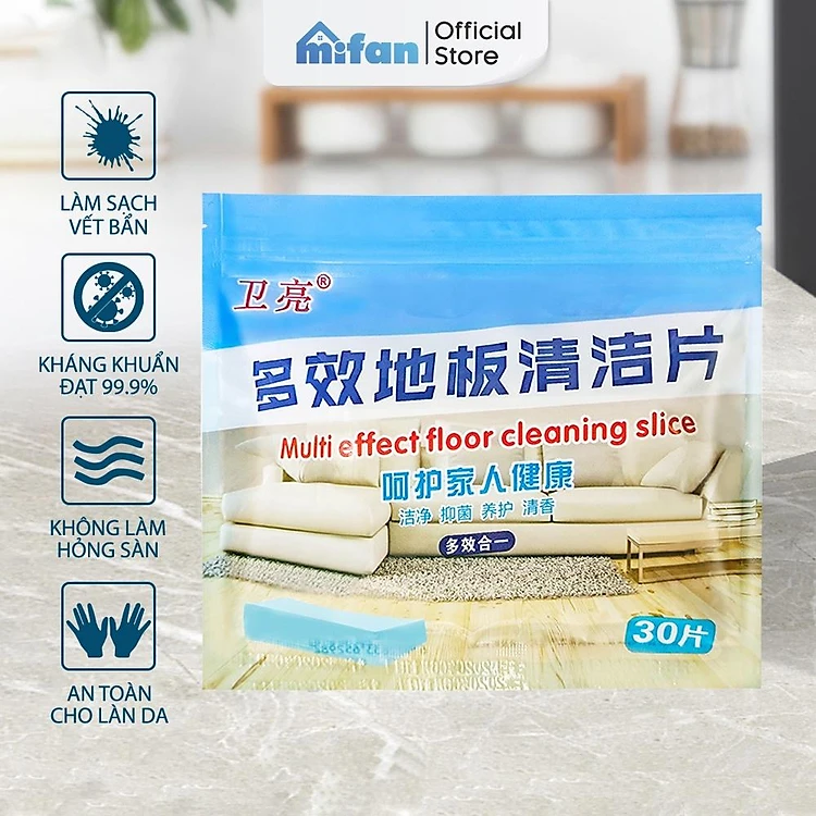 Gói 30 miếng lau nhà nhà đa năng cao cấp Mifan - Hoà tan trong nước - Công nghệ enzyme diệt khuẩn, hương hoa thơm mát, bảo vệ sàn, an toàn cho da