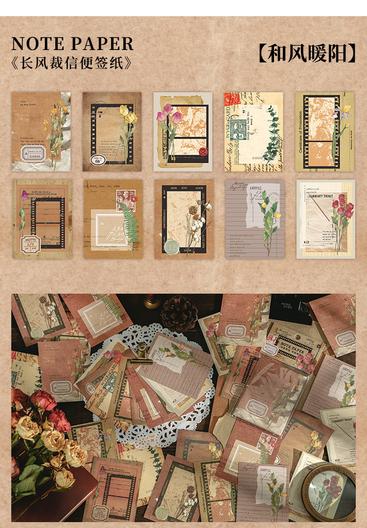 Gói 30 tờ giấy note khung hoa trang trí sổ tay