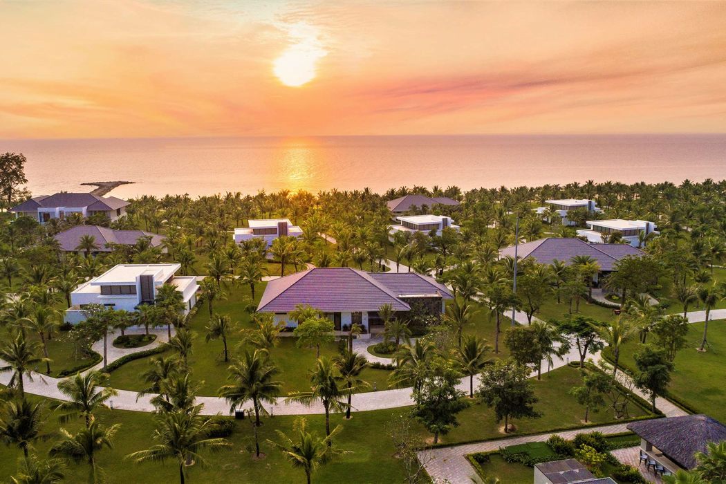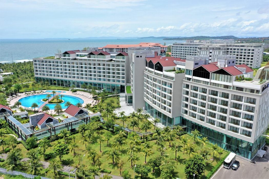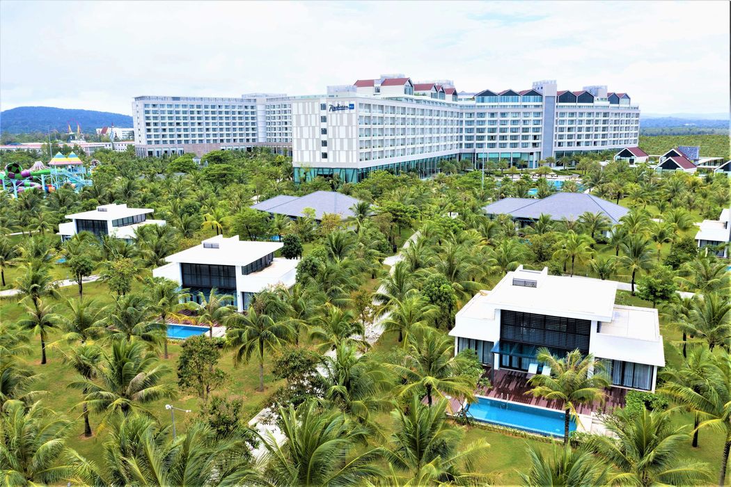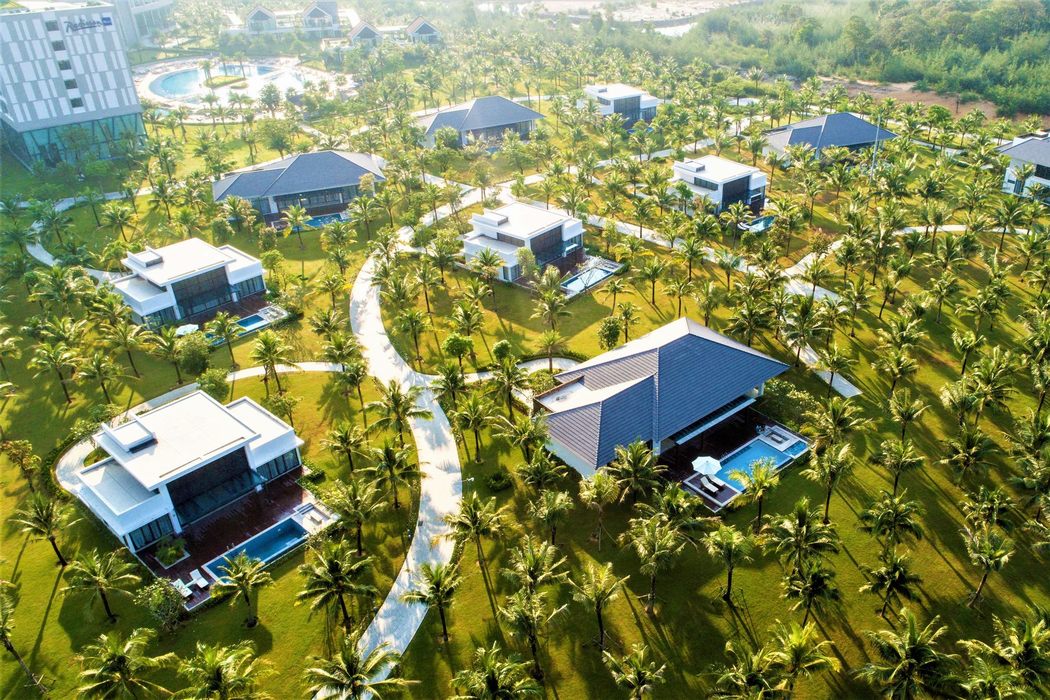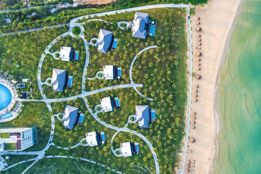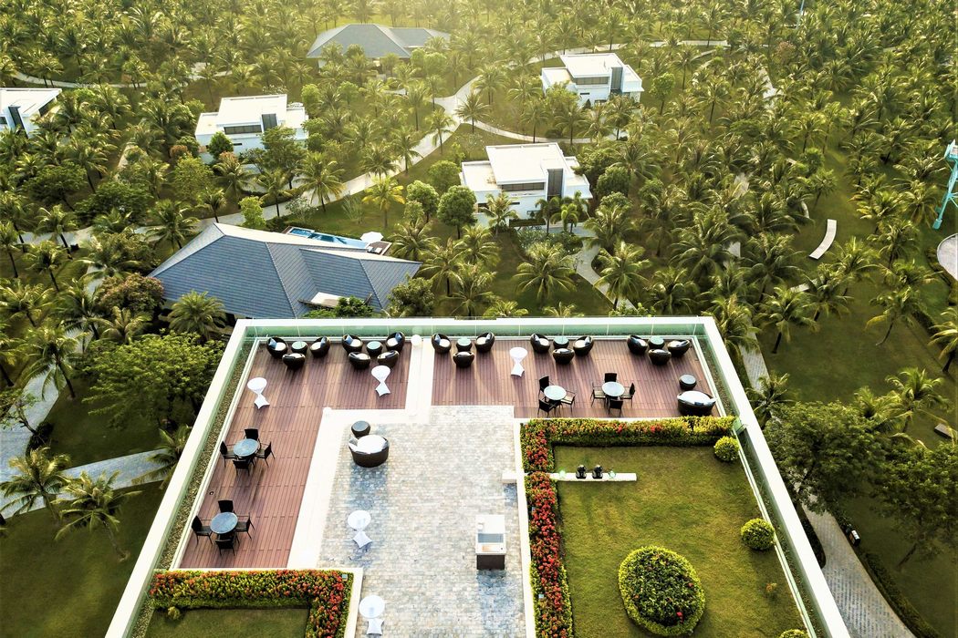 Toàn cảnh Radisson Blu Resort 5* Phú Quốc nhìn từ trên cao với khu vực hồ bơi nằm ở trung tâm, hướng thẳng ra biển, xung quanh được che phủ bởi những rằng dừa của miền nhiệt đới. Luôn có sự phối hợp hài hòa của các mảng xanh để tạo không gian tươi mát và thư giãn bất kể góc nào của resort.