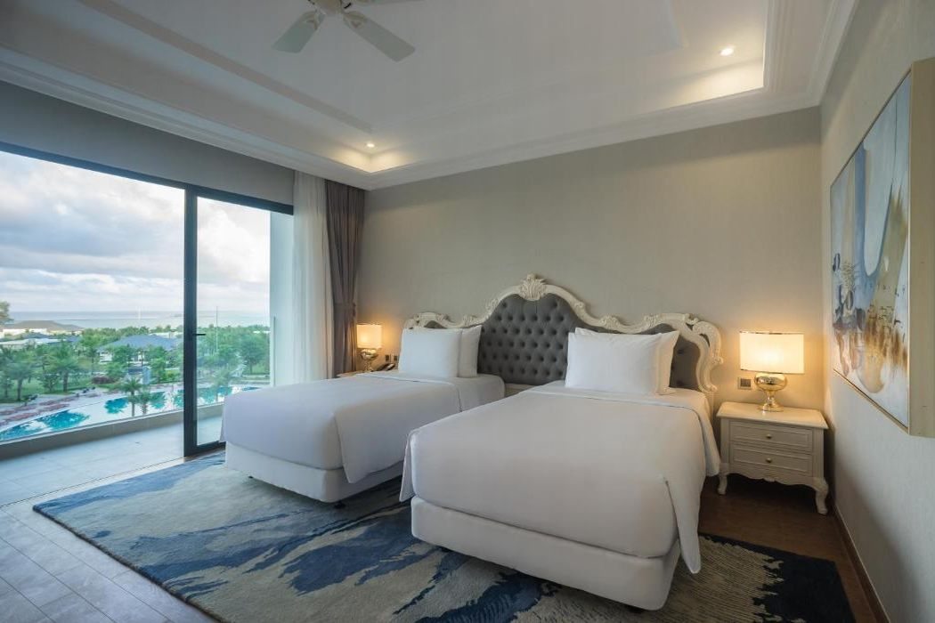 Tại Radisson Blu Resort 5* Phú Quốc, phòng nghỉ rất đa dạng về thiết kế theo nhu cầu và vị trí tọa lạc để bạn lựa chọn theo phong cách riêng của mình. Phòng Deluxe rộng khoảng 45 m2 có thể ở được 2 người lớn, 2 trẻ em. Bạn có thể chọn phòng 2 giường hoặc 1 giường cỡ King vô cùng thoải mái. Bên cạnh đó, phòng Deluxe có ban công lớn hướng ra biển, núi, vườn hoặc hồ bơi tùy vào chọn lựa của bạn.