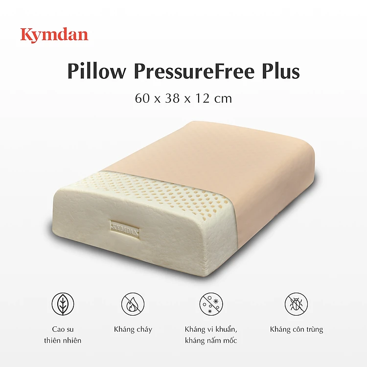 Gối cao su thiên nhiên Kymdan Pillow PressureFree Plus 60 x 38 x 12 cm