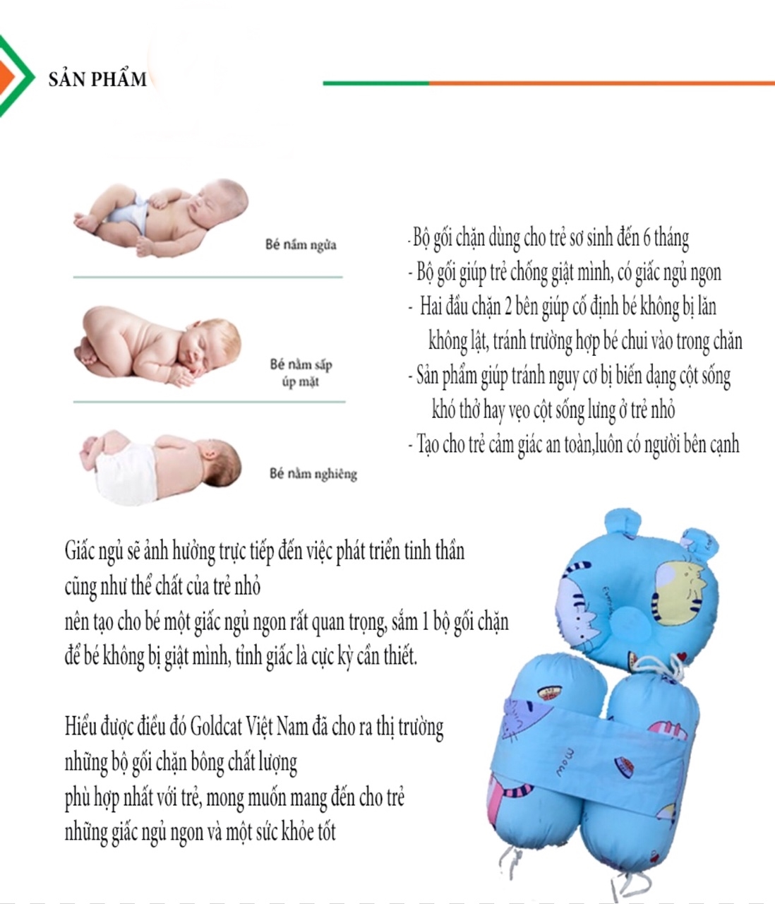 Gối chặn bông cho bé Goldcat
