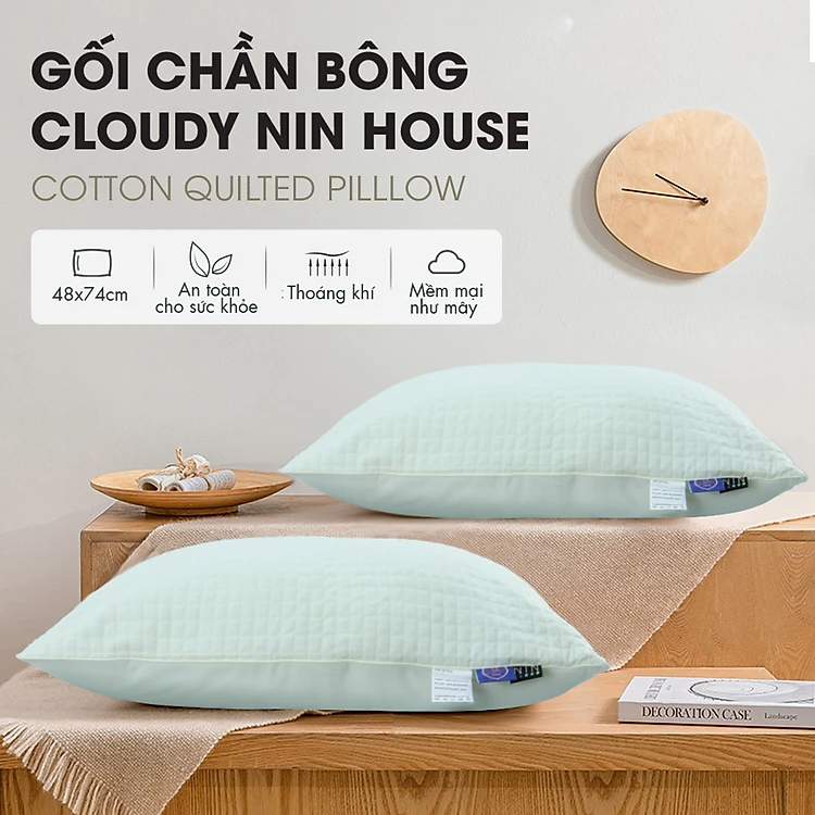 Gối chần bông, ruột gối đầu cho người nằm thấp Cloudy NIN House 48x74cm microfiber nhiều màu Quilted Pilllow