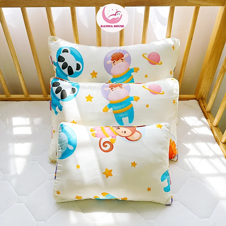 Gối cho bé 0-10 tuổi Katina House,vải Tencel mềm mát, gòn lông vũ êm ái, thấm hút tốt