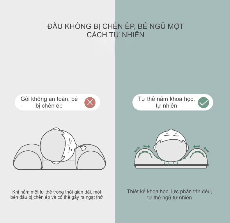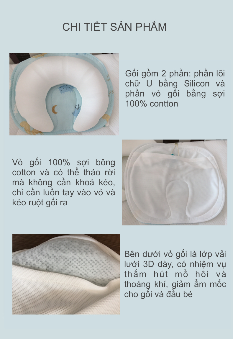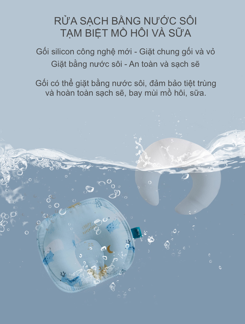 Gối Chống Méo Đầu Cho Bé - Vật Liệu Silicon, Không Mùi Cao Su, Có Thể Giặt Bằng Nước Sôi, Độ Dày Gần Bằng 0