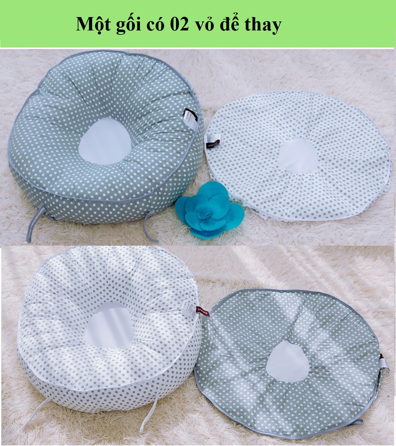 Vỏ có thể tháo ra để giặt, lõi có thể giặt nếu cần, có vỏ phụ để thay ( 1 gối có 2 vỏ hai màu khác nhau : ghi xám + trắng)