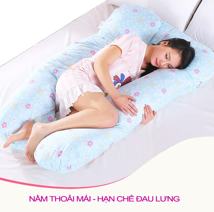 Gối chữ U dành cho bà bầu sẽ giúp mẹ giải quyết những vấn đề trên. Gối được thiết kế đường cong thông minh với kích cỡ phù hợp với mẹ bầu nhằm nâng đỡ đồng thời phần đầu, vai, lưng, hông và chân của mẹ. Và quan trọng nhất là giúp nâng đỡ bụng bầu nặng nề để mẹ có tư thế nằm thoải mái mà không cần kê gối phía dưới bụng như thông thường.