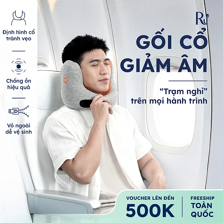 Gối Cổ Giảm Âm 4The | Noise Cancelling Pillow | Gối Cổ Du Lịch Thoải Mái - Chống Ồn| 3 Màu Sắc | Cam, Xám, Xanh Dương