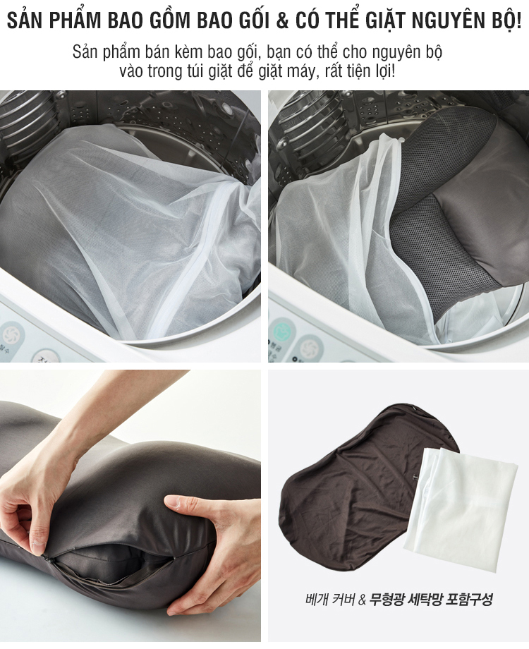 Sản phẩm bán kèm bao gối, bạn có thể cho nguyên bộ vào trong túi giặt để giặt máy, rất tiện lợi!