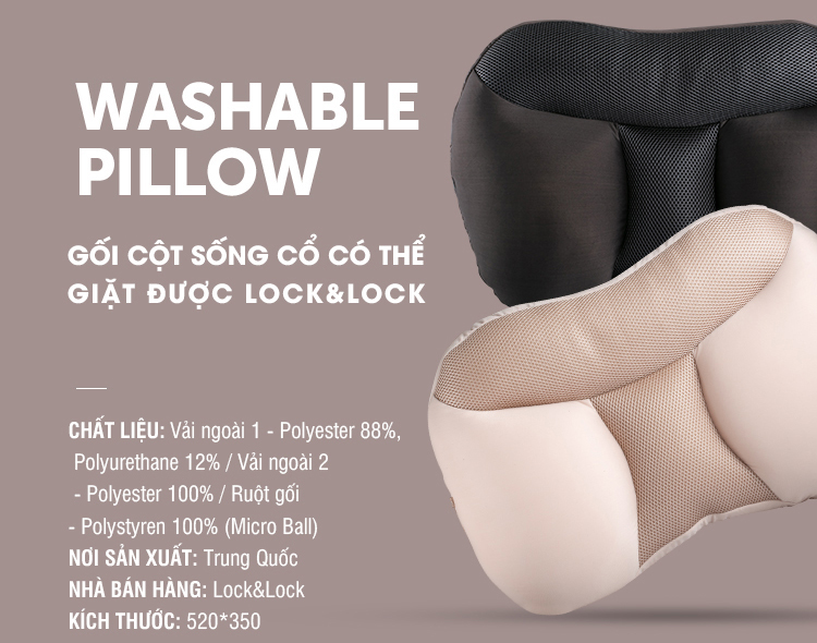 Gối Cột Sống Cổ Có Thể Giặt Được Lock&Lock Fab 52 x 35cm